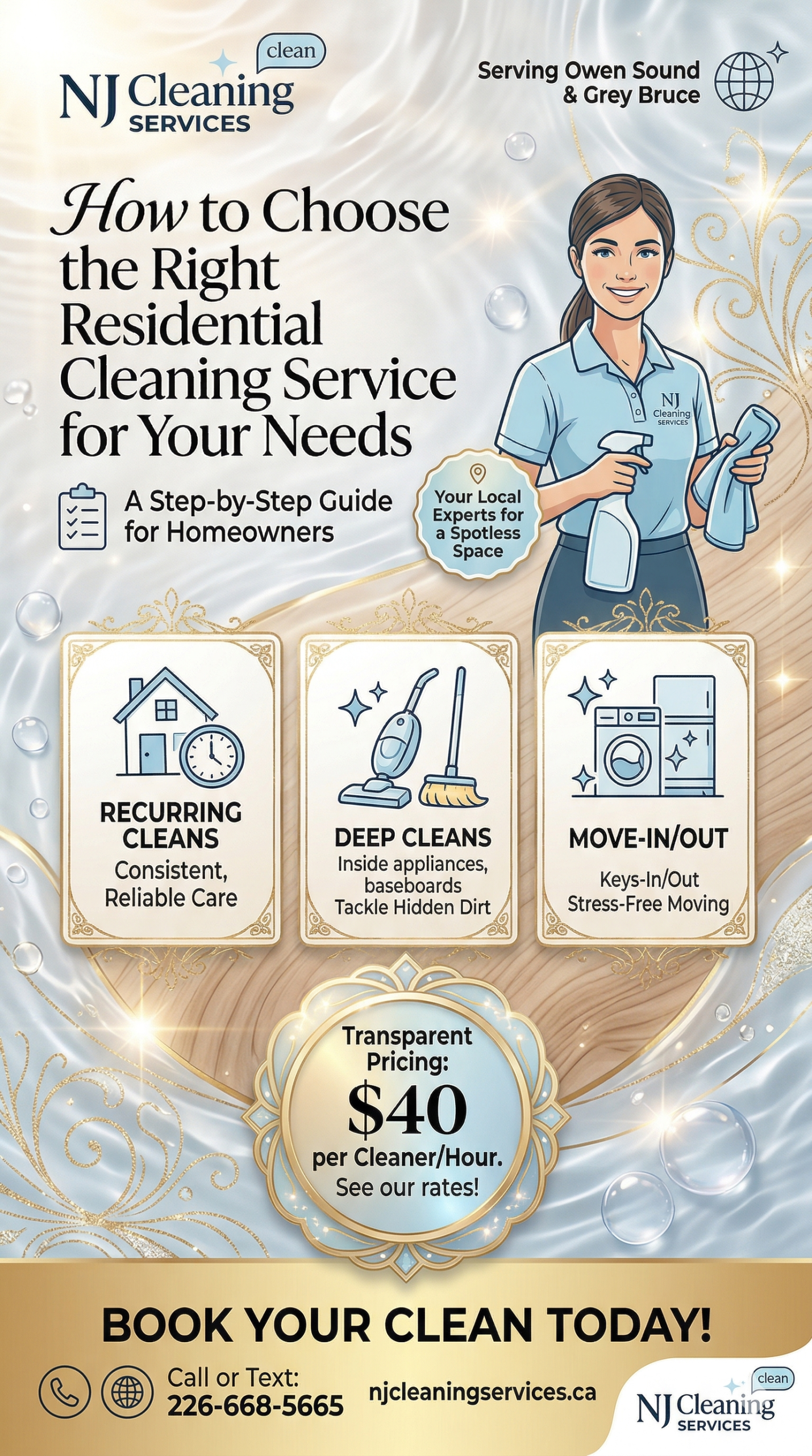 At NJ Cleaning Services, serving Owen Sound and the entire Grey Bruce area, we understand that every home and every homeowner is unique. We’ve compiled this comprehensive guide to help you navigate the process of choosing the perfect cleaning service for your needs.